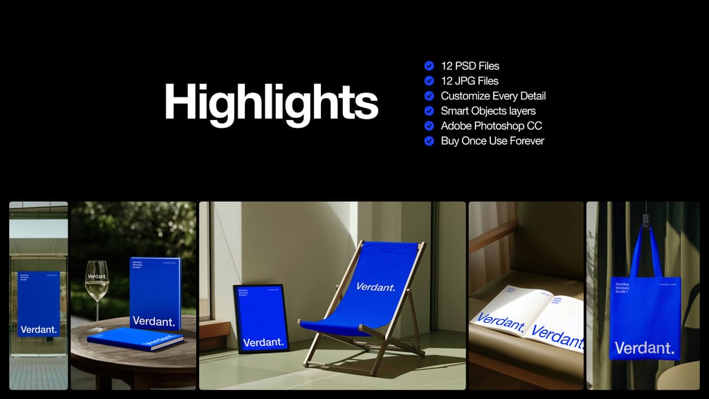 The Verdant Branding Mockups Kit is a premium collection of 12 meticulously crafted mockups inspired by quiet architectural environments, natural greenery, and refined editorial minimalism. Every scene is bathed in soft daylight and built to highlight your design work with elegance and clarity.